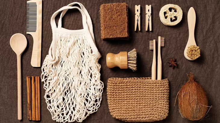 Products made from wood or bamboo and reusable products (straws, cutlery, water bottles).